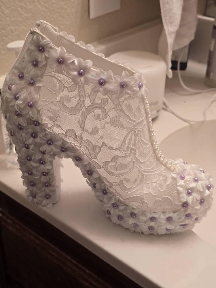 Each pair is personalized and prepared according to your wishes. When choosing your bridal shoes, you can specify the desired color, design and details. If you are looking for a special touch for an unforgettable look, these personalized shoes are for you! "We are here to complement your wedding dress with our comfort bridal shoes, personalized designs, wedding shoes, and more.