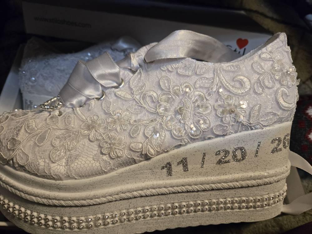 These custom wedding sneakers came out AMAZING. Beautifully made, so comfortable, and exactly what I envisioned for my big day. I couldn’t be happier! Also the customer service was excellent!