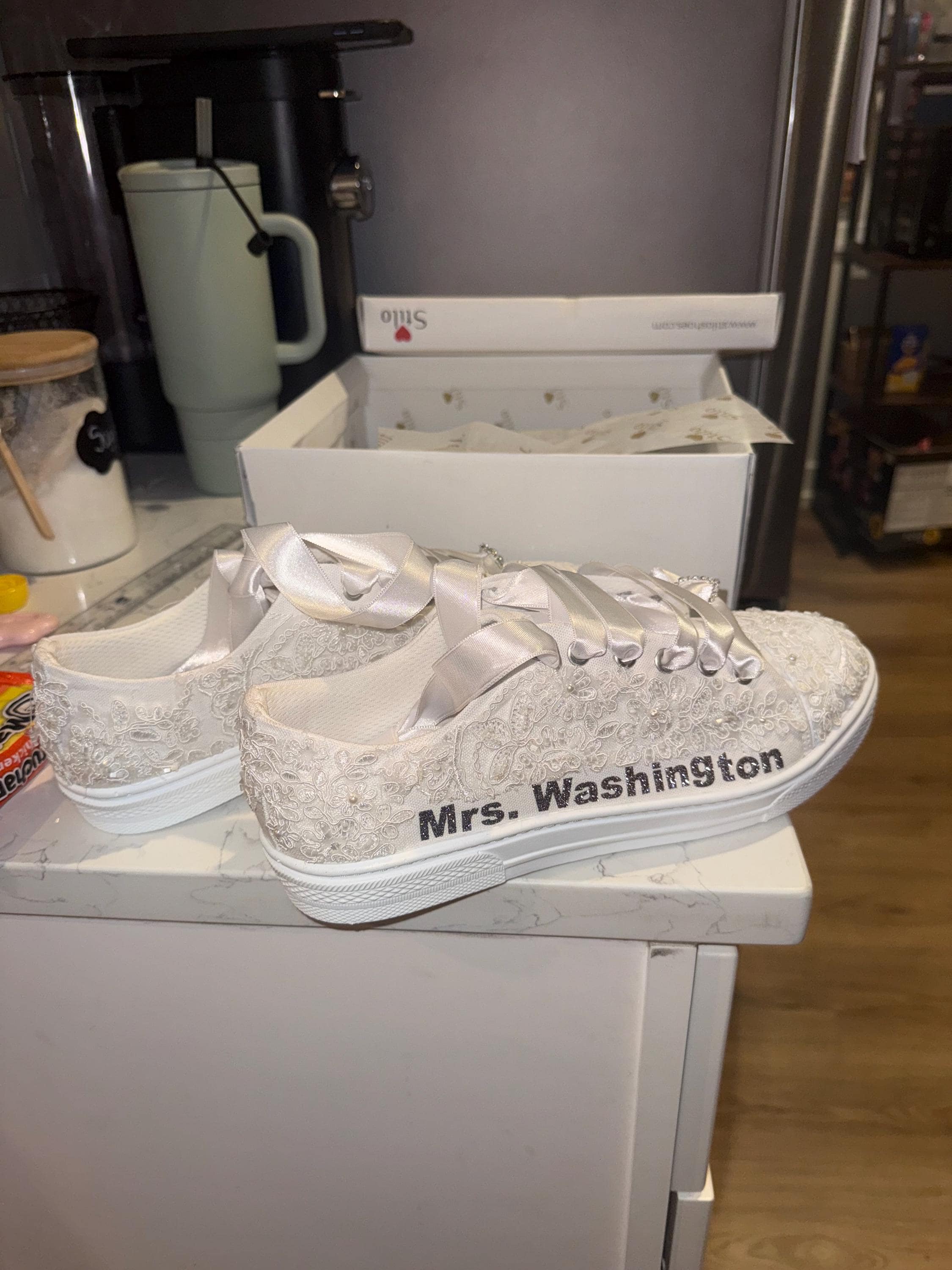 In Shoelaces Name: >MRS. XXXXXXX (Name) in Lace (Picture)