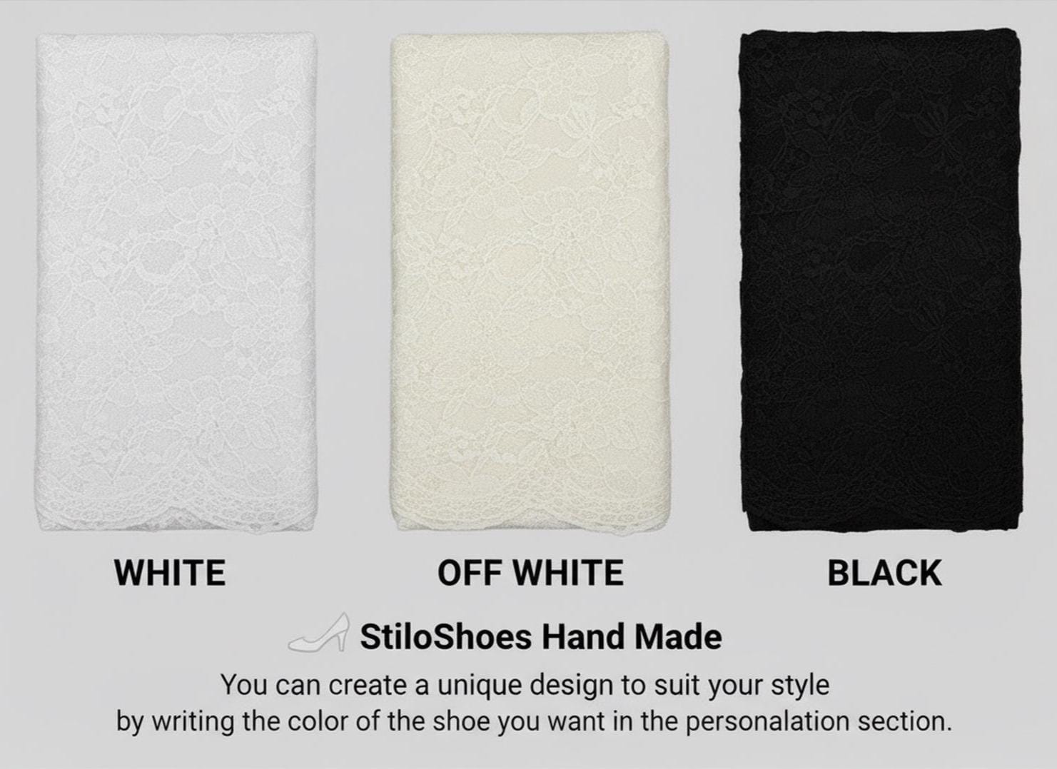 At StiloShoes, we offer free customization for your shoes, including the addition of your name and date. We do not dye shoes in colors other than white; instead, we produce them using colored materials with original inventory colors. Our handcrafted shoes feature special touches, such as glitter and printed writing on some styles, while others incorporate these customizations onto the shoe laces. All customizations are free; simply add your preferences in the personalization section. The jewelry letters and numbers can be easily removed from the shoes. For any personalizations or changes to your order, we are eager to assist and design together with you. We kindly ask that you read the product description before placing your order.
