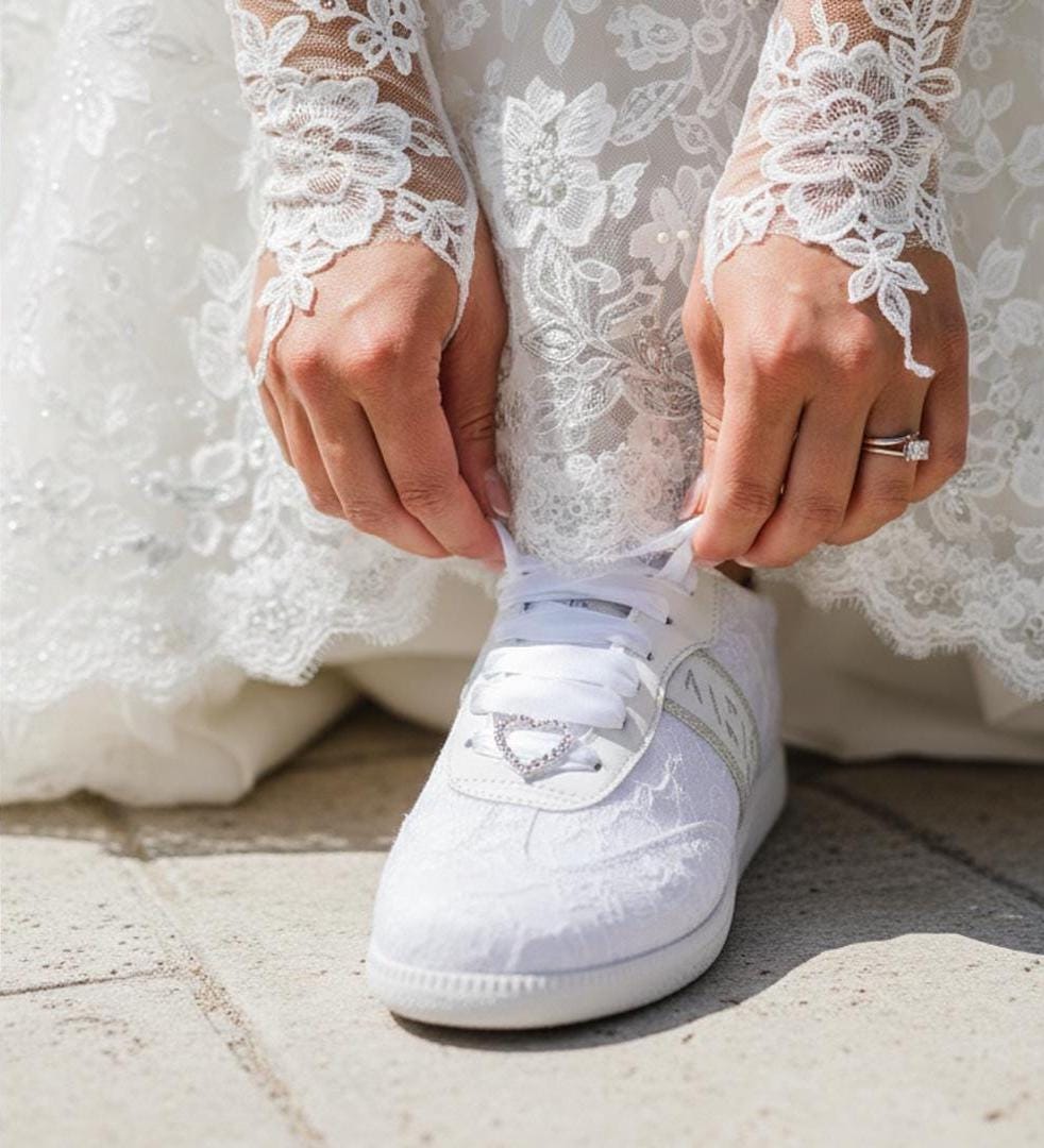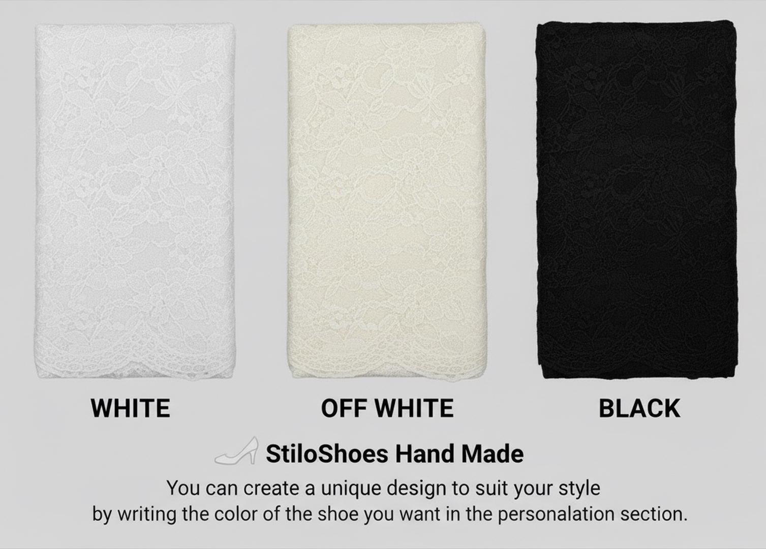 At StiloShoes, we offer free customization for your shoes, including the addition of your name and date. We do not dye shoes in colors other than white; instead, we produce them using colored materials with original inventory colors. Our handcrafted shoes feature special touches, such as glitter and printed writing on some styles, while others incorporate these customizations onto the shoe laces. All customizations are free; simply add your preferences in the personalization section. The jewelry letters and numbers can be easily removed from the shoes. For any personalizations or changes to your order, we are eager to assist and design together with you. We kindly ask that you read the product description before placing your order.