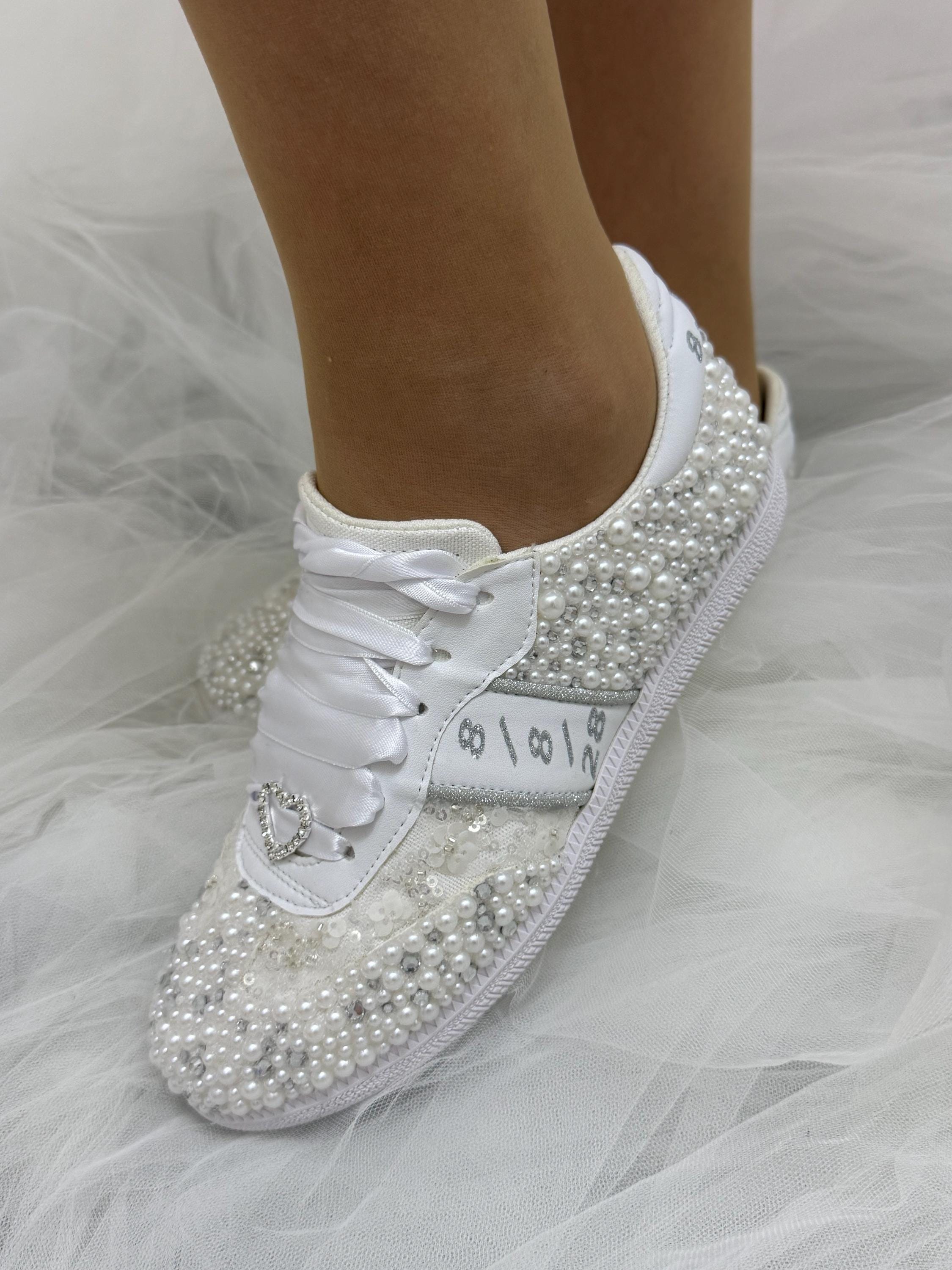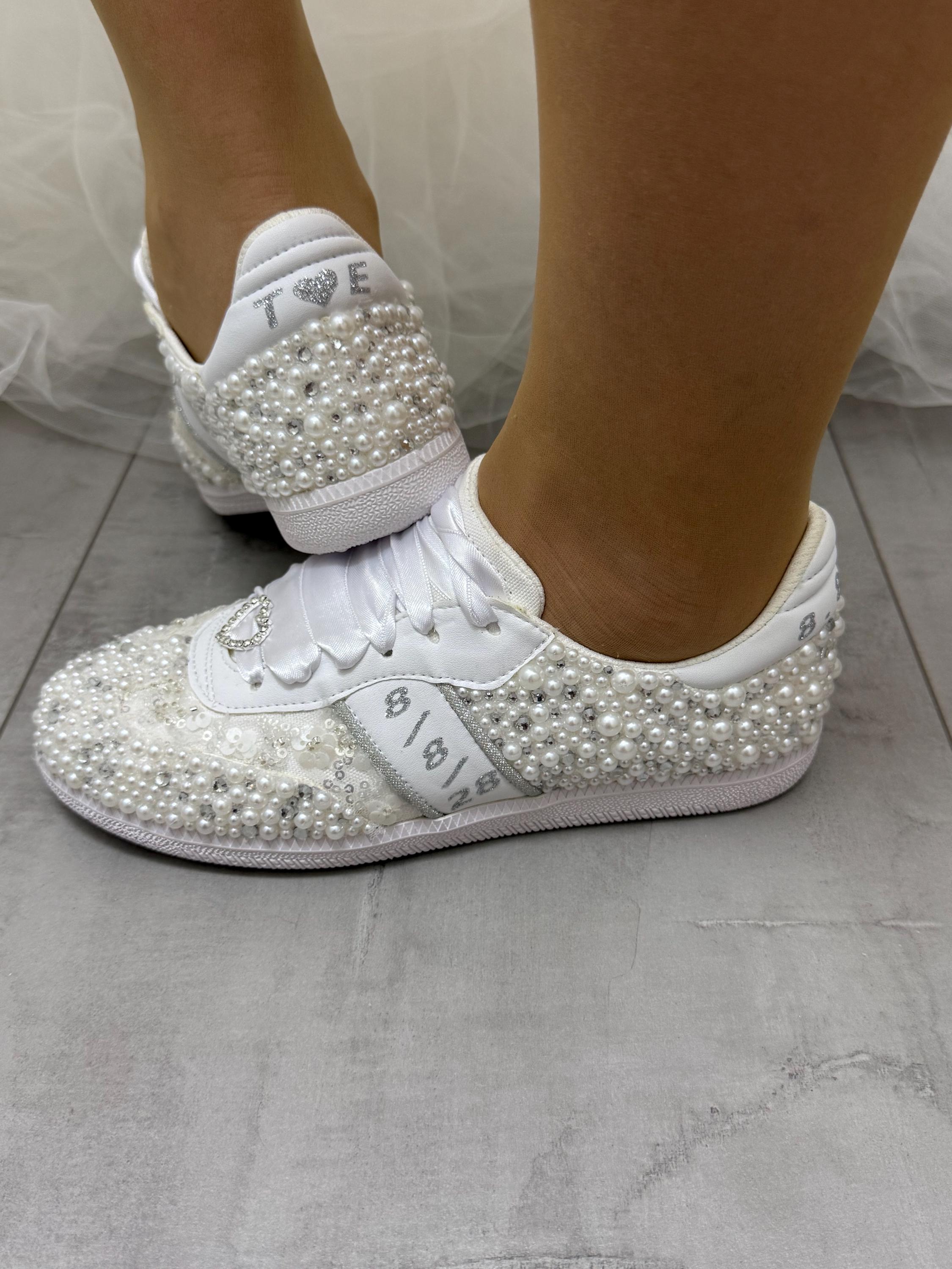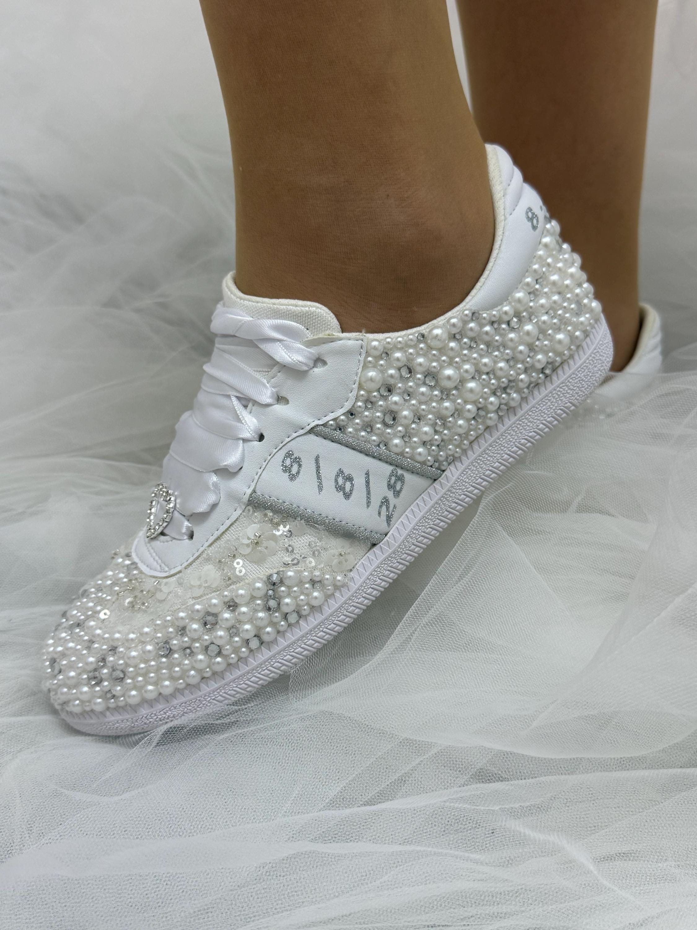 *Shoes Picture Color :White Pearls / Text Color 'Silver'