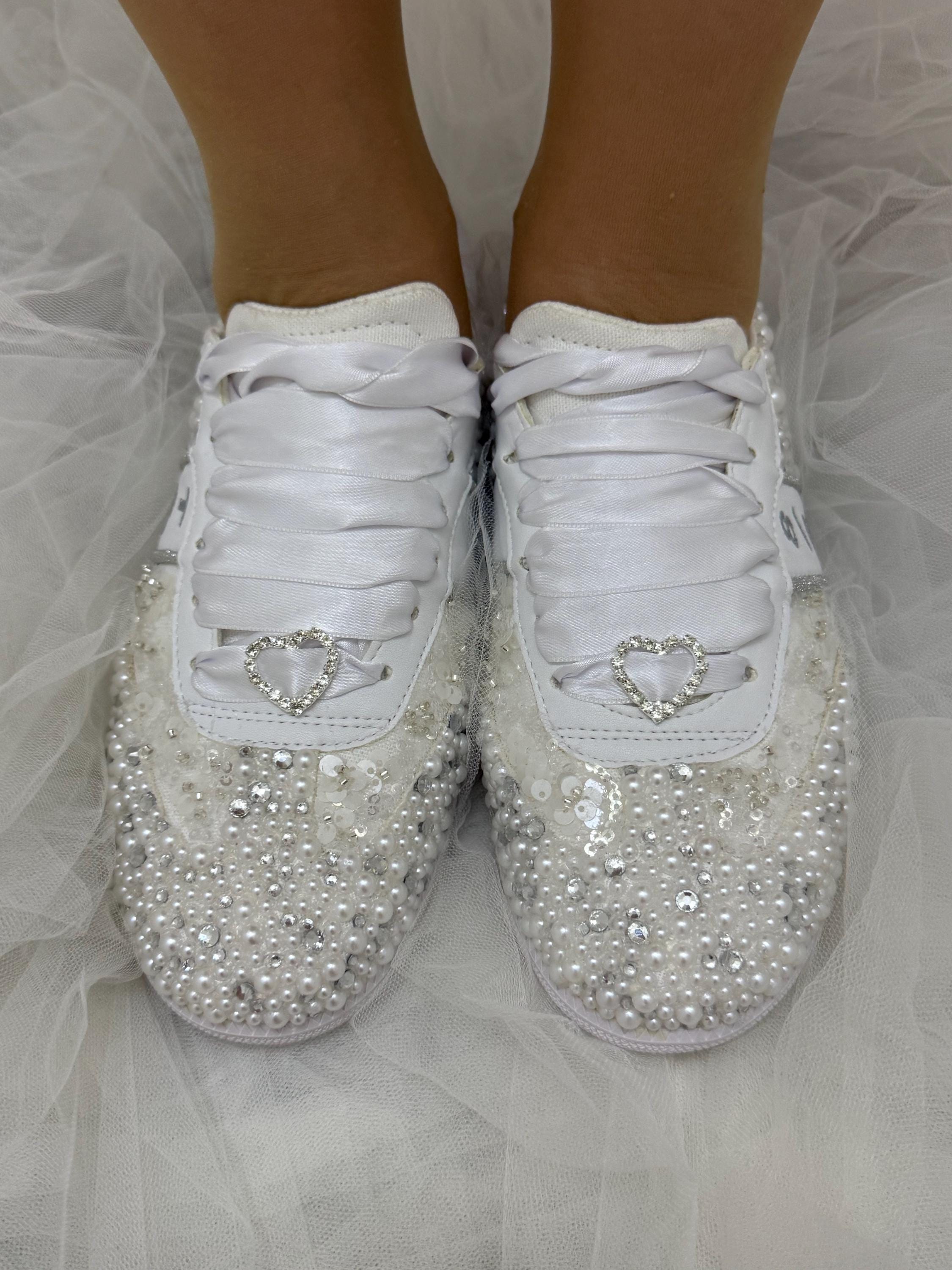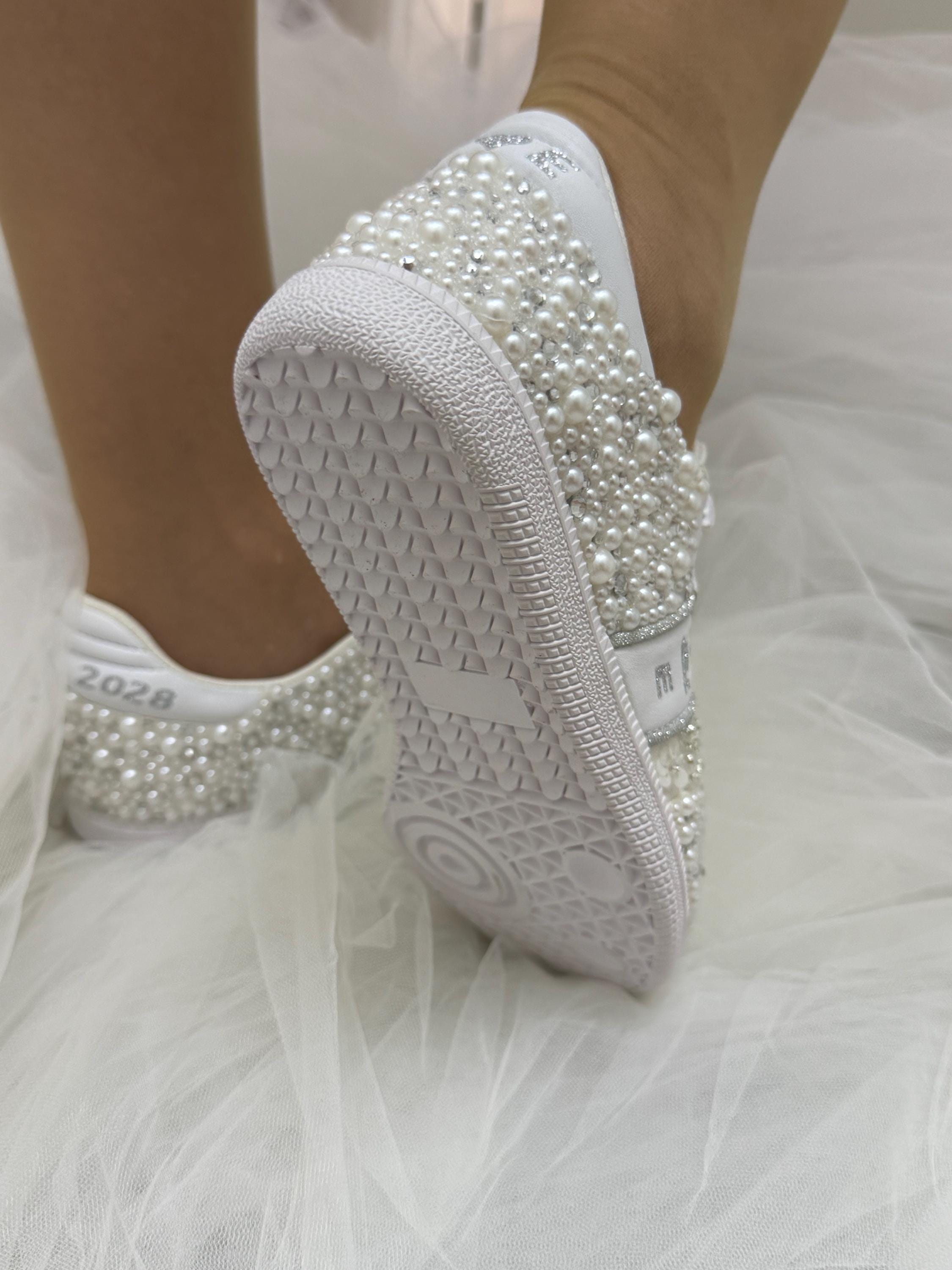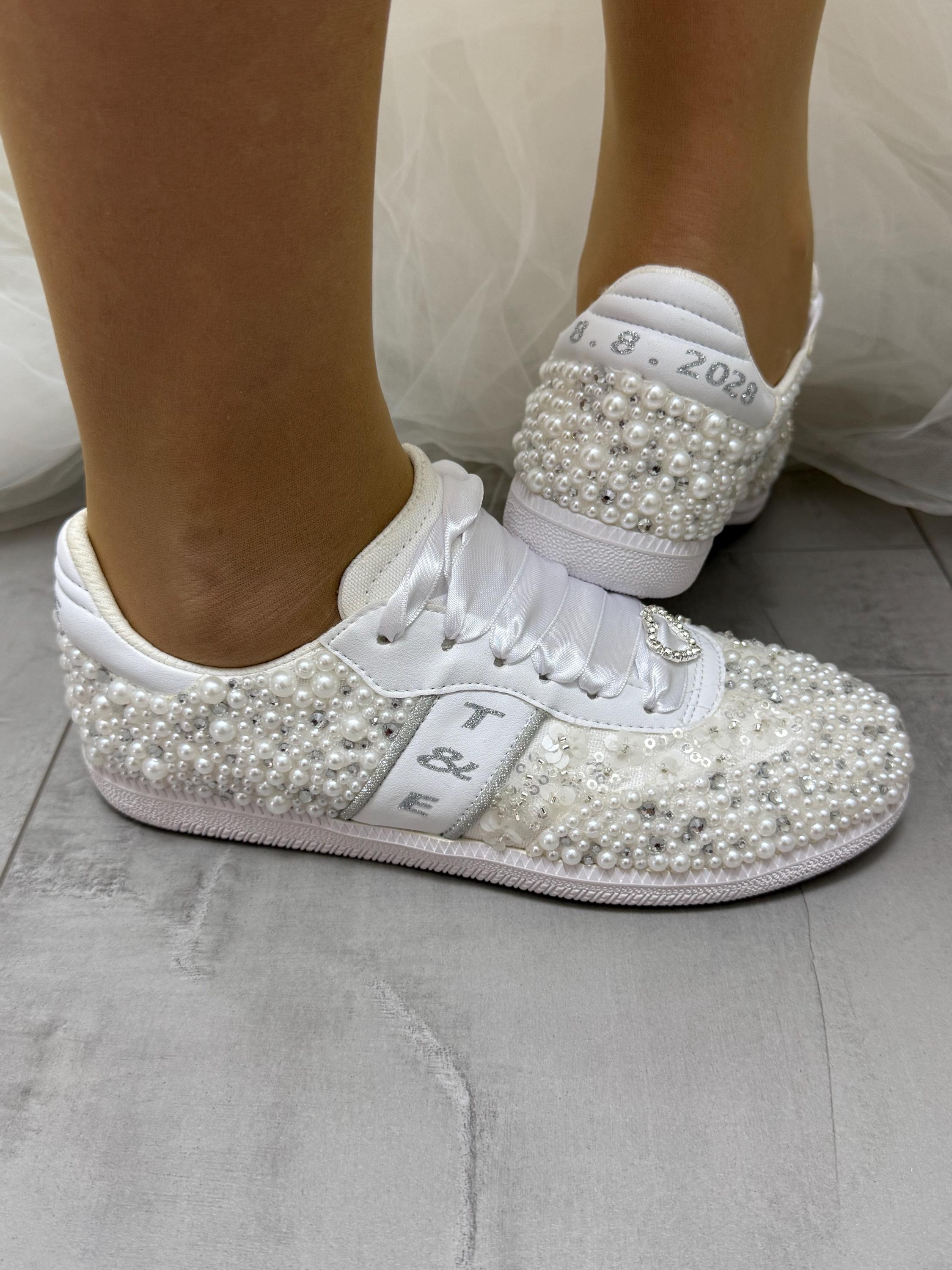 *Shoes Picture Color :White Pearls / Text Color 'Silver'