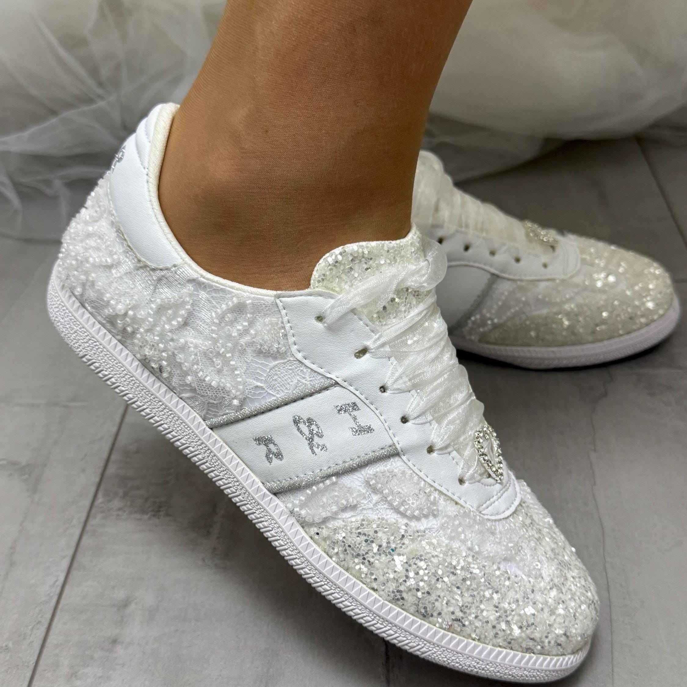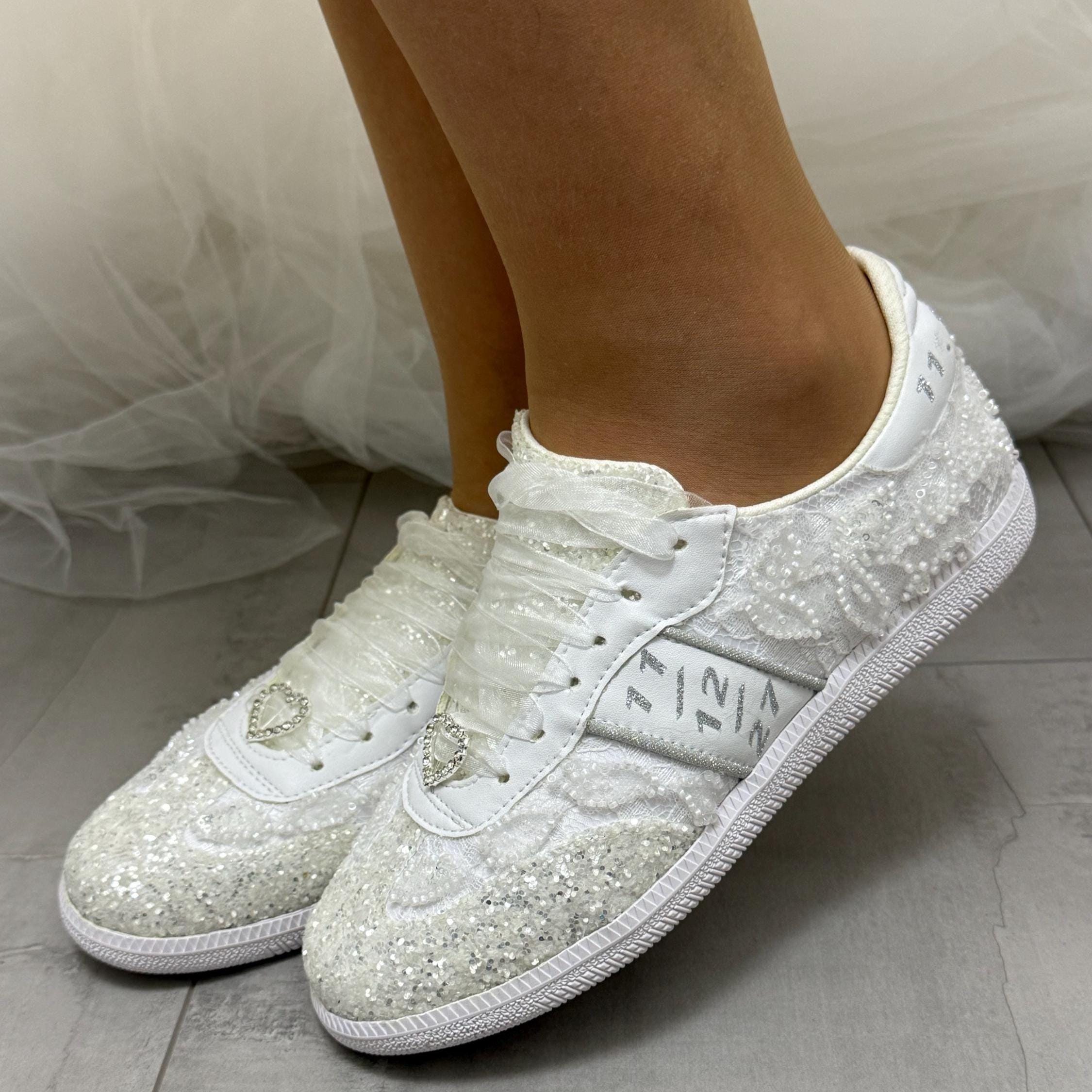 At StiloShoes, we offer free customization for your shoes, including the addition of your name and date. We do not dye shoes in colors other than white; instead, we produce them using colored materials with original inventory colors. Our handcrafted shoes feature special touches, such as glitter and printed writing on some styles, while others incorporate these customizations onto the shoe laces. All customizations are free; simply add your preferences in the personalization section. The jewelry letters and numbers can be easily removed from the shoes. For any personalizations or changes to your order, we are eager to assist and design together with you. We kindly ask that you read the product description before placing your order.