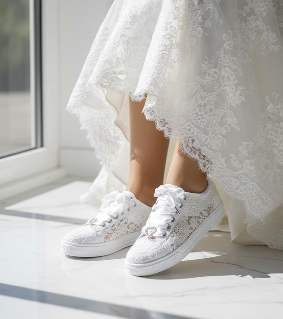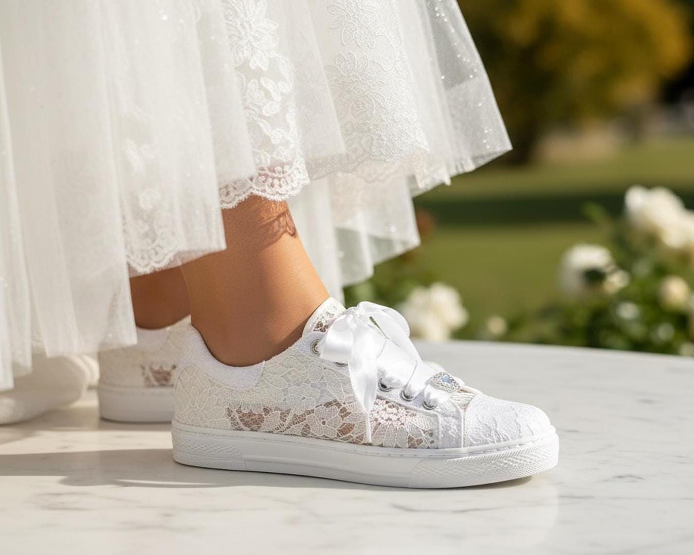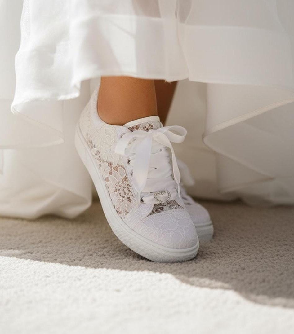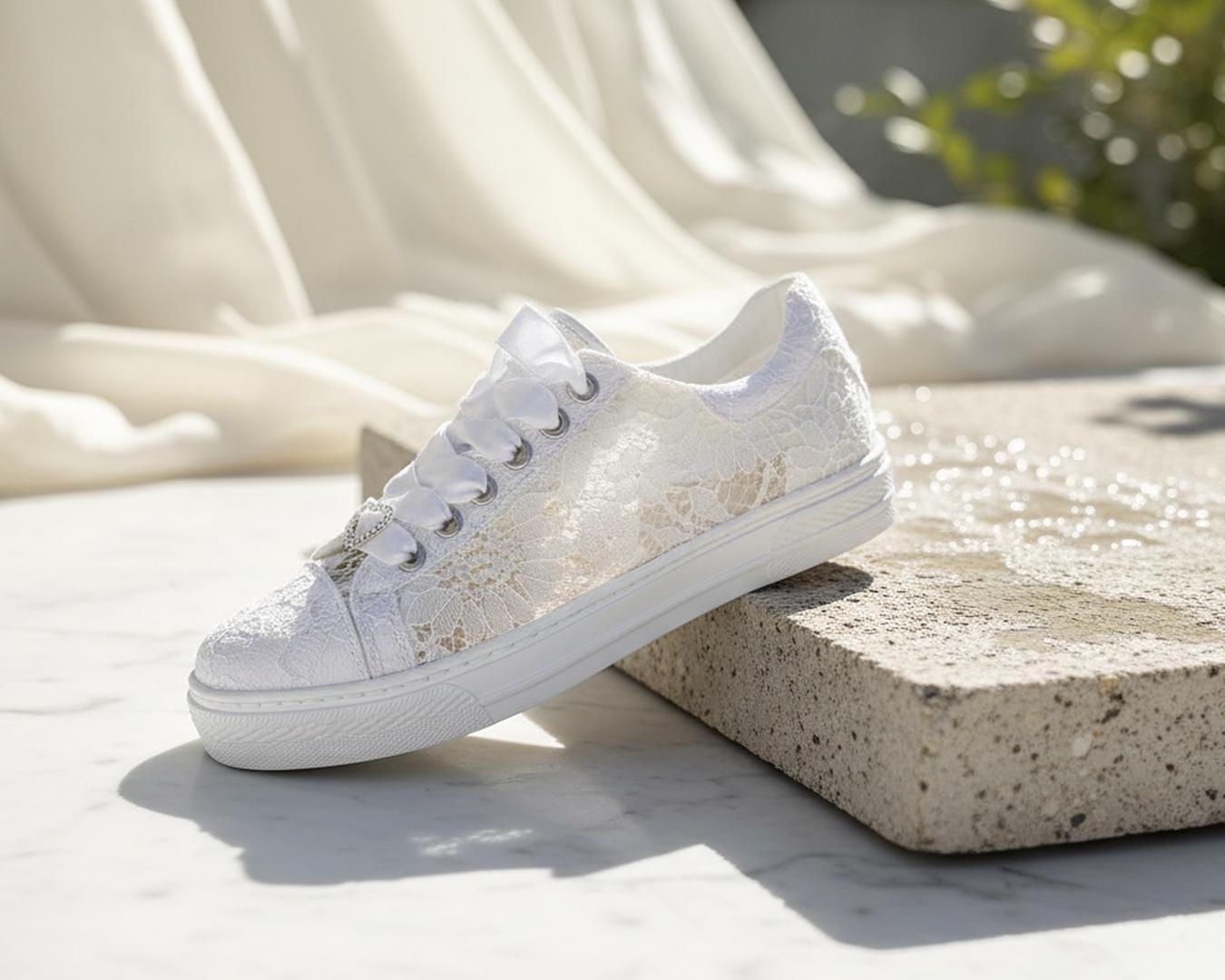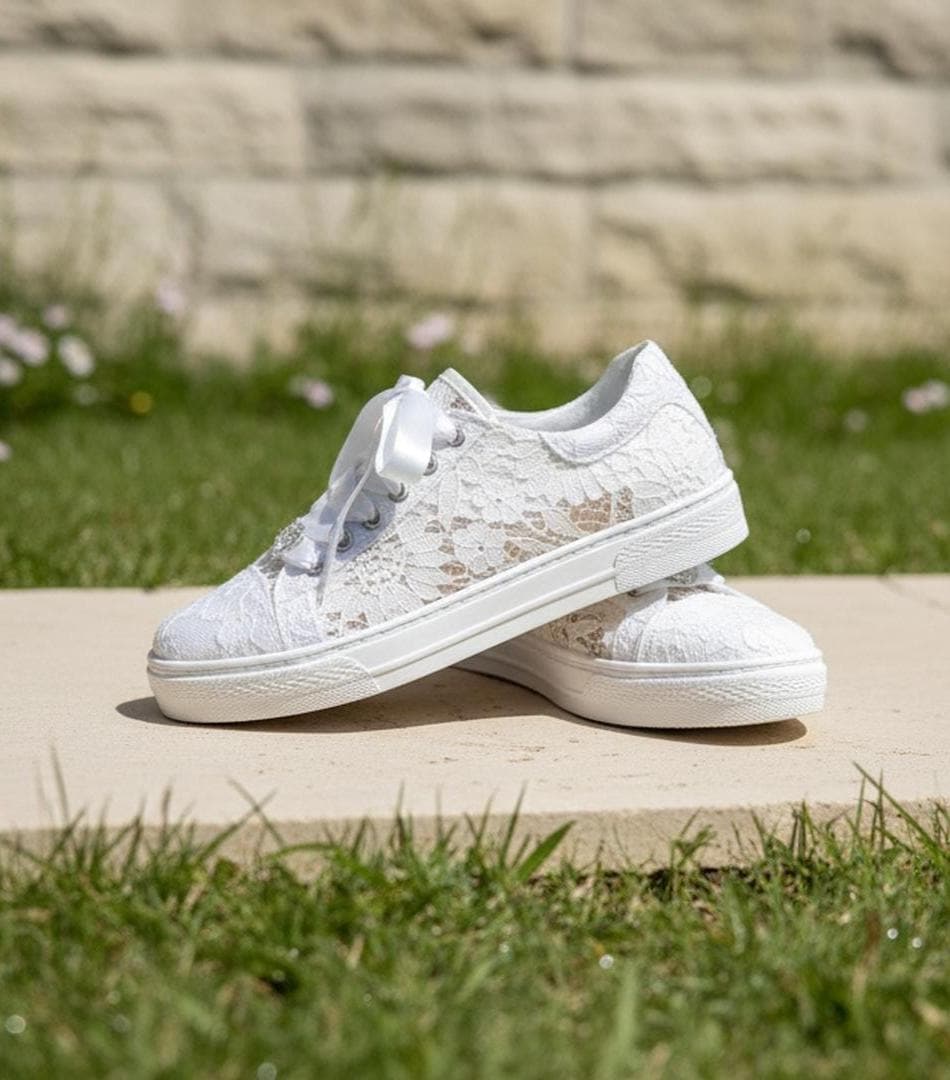 At StiloShoes, we offer free customization for your shoes, including the addition of your name and date. We do not dye shoes in colors other than white; instead, we produce them using colored materials with original inventory colors. Our handcrafted shoes feature special touches, such as glitter and printed writing on some styles, while others incorporate these customizations onto the shoe laces. All customizations are free; simply add your preferences in the personalization section. The jewelry letters and numbers can be easily removed from the shoes. For any personalizations or changes to your order, we are eager to assist and design together with you. We kindly ask that you read the product description before placing your order.