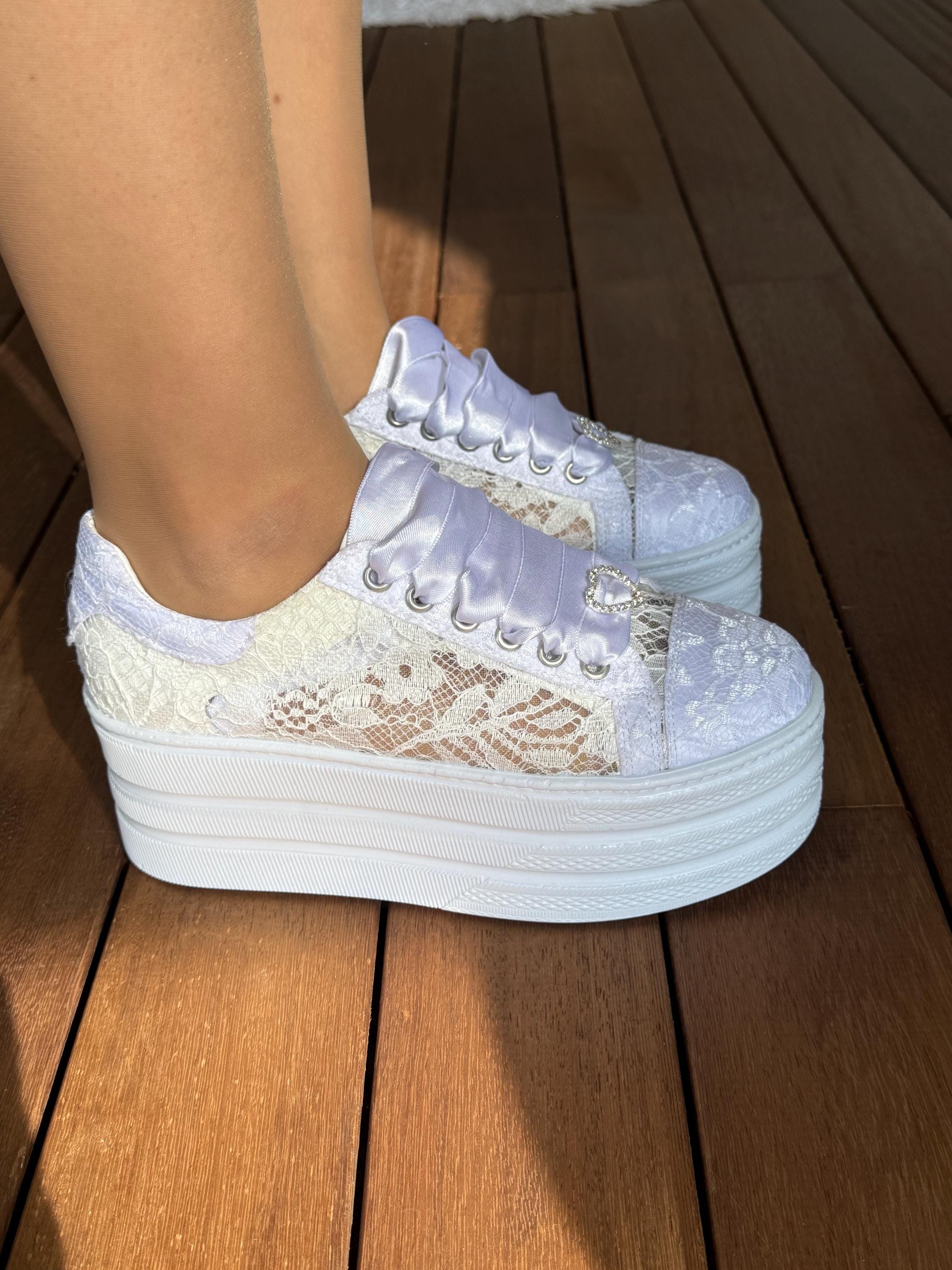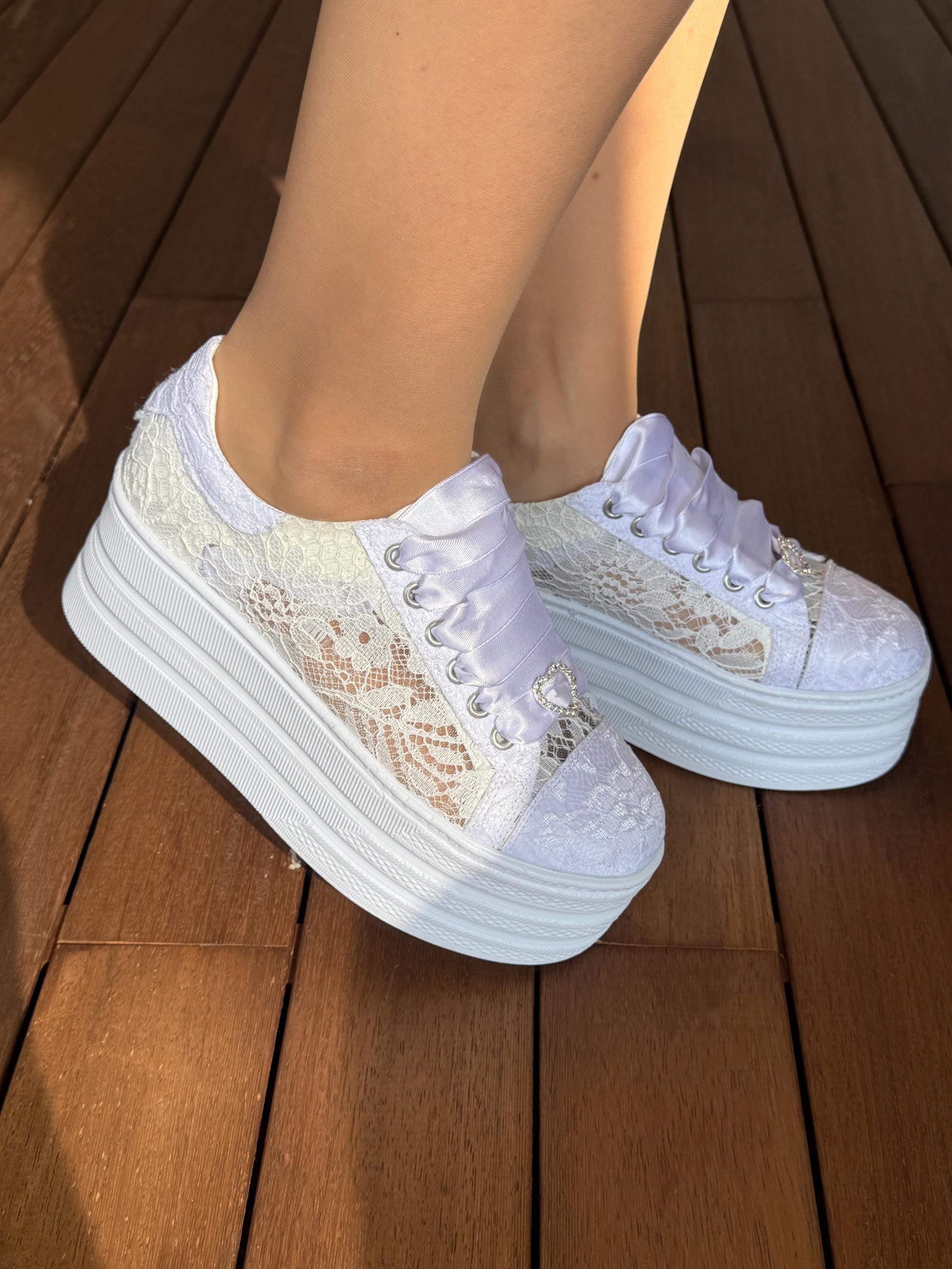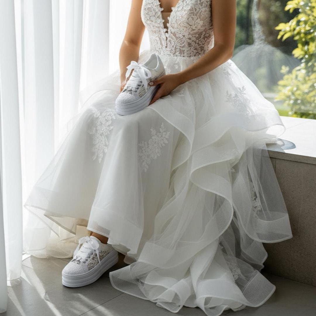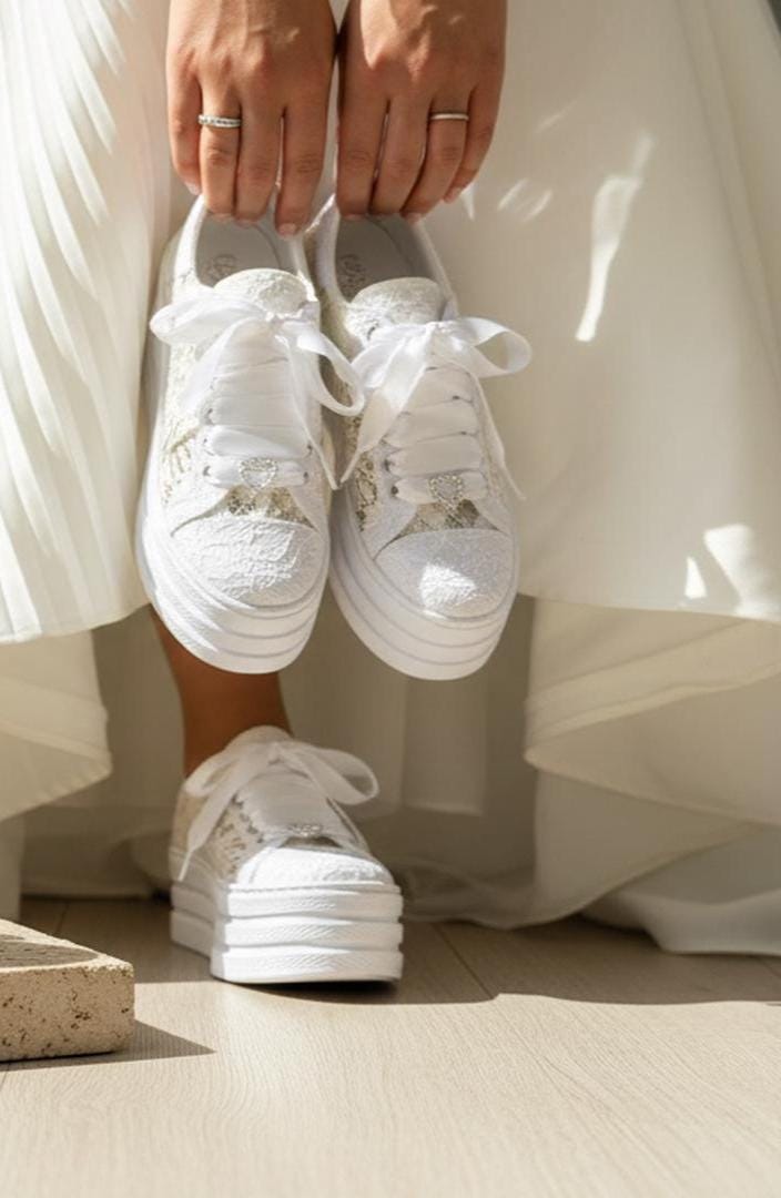 At StiloShoes, we offer free customization for your shoes, including the addition of your name and date. We do not dye shoes in colors other than white; instead, we produce them using colored materials with original inventory colors. Our handcrafted shoes feature special touches, such as glitter and printed writing on some styles, while others incorporate these customizations onto the shoe laces. All customizations are free; simply add your preferences in the personalization section. The jewelry letters and numbers can be easily removed from the shoes. For any personalizations or changes to your order, we are eager to assist and design together with you. We kindly ask that you read the product description before placing your order.