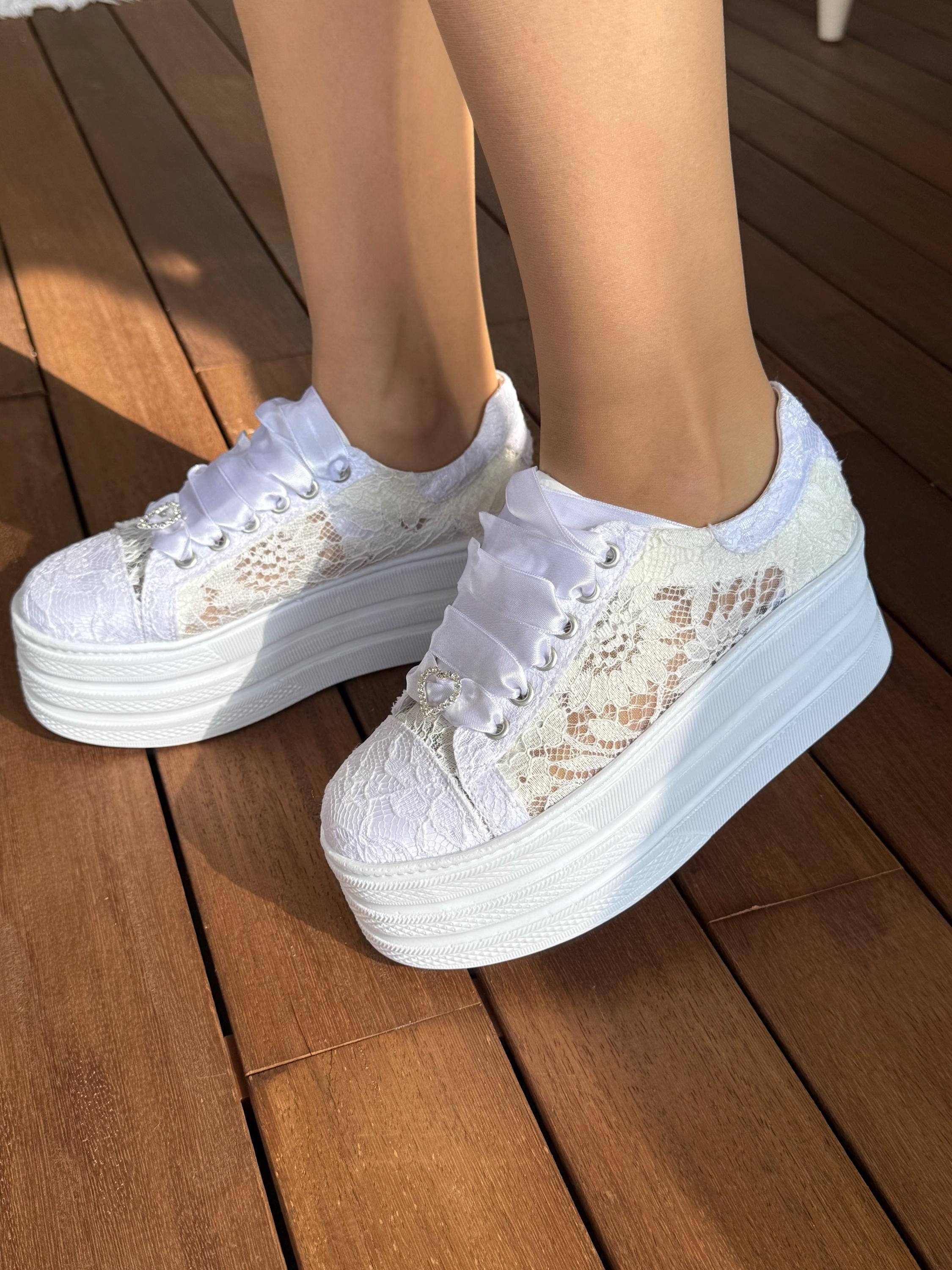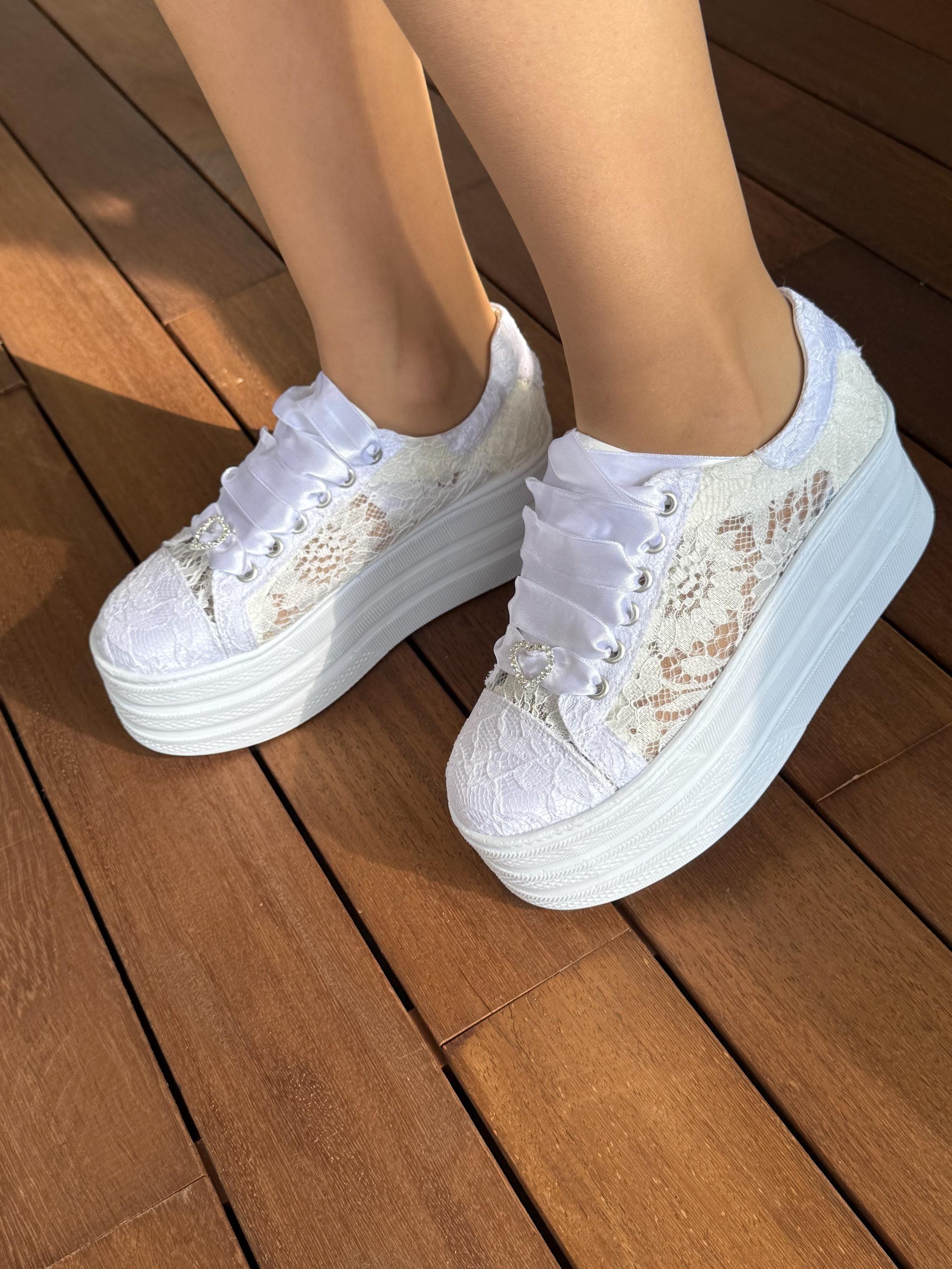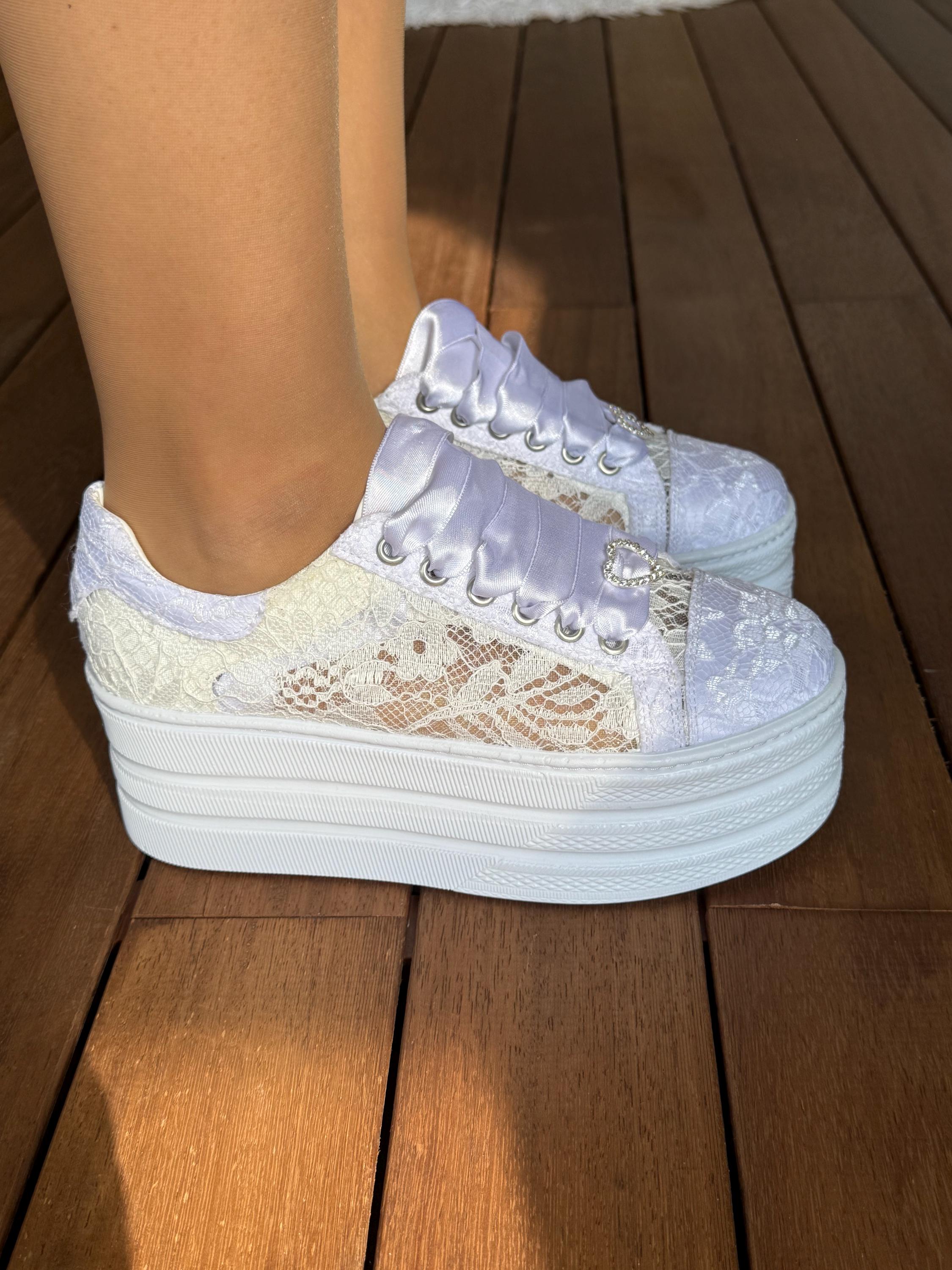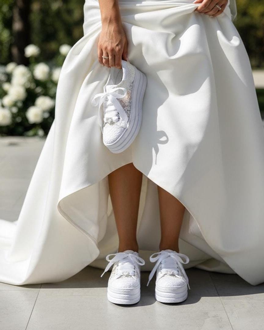 At StiloShoes, we offer free customization for your shoes, including the addition of your name and date. We do not dye shoes in colors other than white; instead, we produce them using colored materials with original inventory colors. Our handcrafted shoes feature special touches, such as glitter and printed writing on some styles, while others incorporate these customizations onto the shoe laces. All customizations are free; simply add your preferences in the personalization section. The jewelry letters and numbers can be easily removed from the shoes. For any personalizations or changes to your order, we are eager to assist and design together with you. We kindly ask that you read the product description before placing your order.