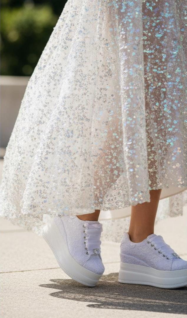 At StiloShoes, we offer free customization for your shoes, including the addition of your name and date. We do not dye shoes in colors other than white; instead, we produce them using colored materials with original inventory colors. Our handcrafted shoes feature special touches, such as glitter and printed writing on some styles, while others incorporate these customizations onto the shoe laces. All customizations are free; simply add your preferences in the personalization section. The jewelry letters and numbers can be easily removed from the shoes. For any personalizations or changes to your order, we are eager to assist and design together with you. We kindly ask that you read the product description before placing your order.