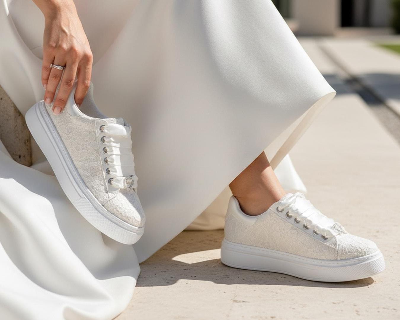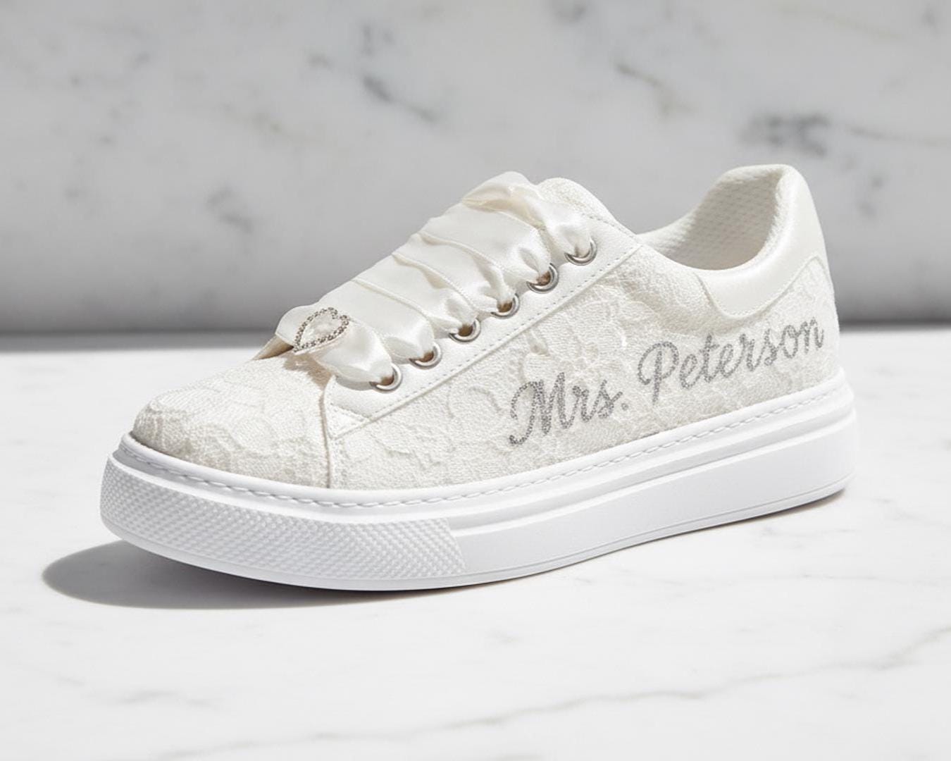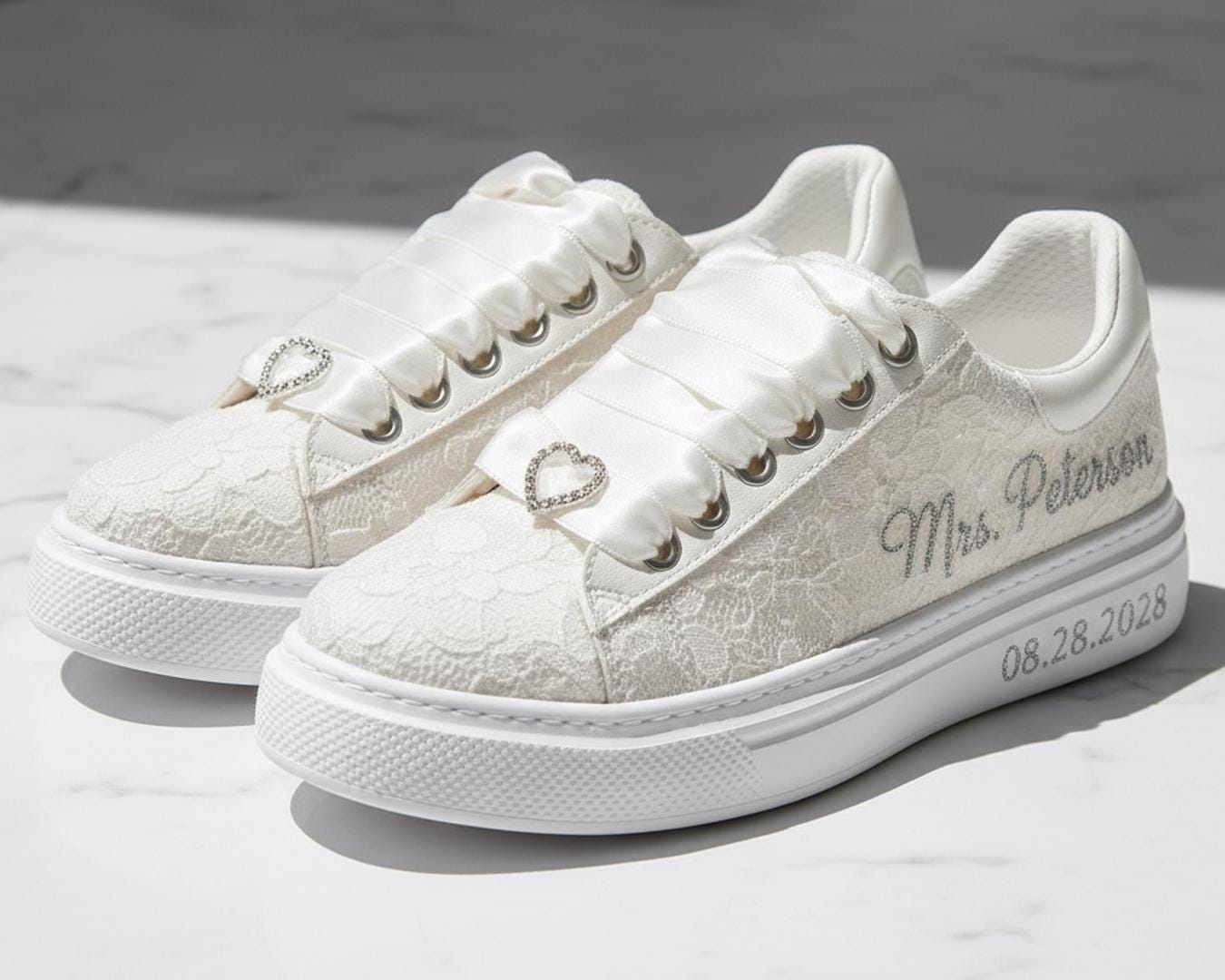 At StiloShoes, we offer free customization for your shoes, including the addition of your name and date. We do not dye shoes in colors other than white; instead, we produce them using colored materials with original inventory colors. Our handcrafted shoes feature special touches, such as glitter and printed writing on some styles, while others incorporate these customizations onto the shoe laces. All customizations are free; simply add your preferences in the personalization section. The jewelry letters and numbers can be easily removed from the shoes. For any personalizations or changes to your order, we are eager to assist and design together with you. We kindly ask that you read the product description before placing your order.