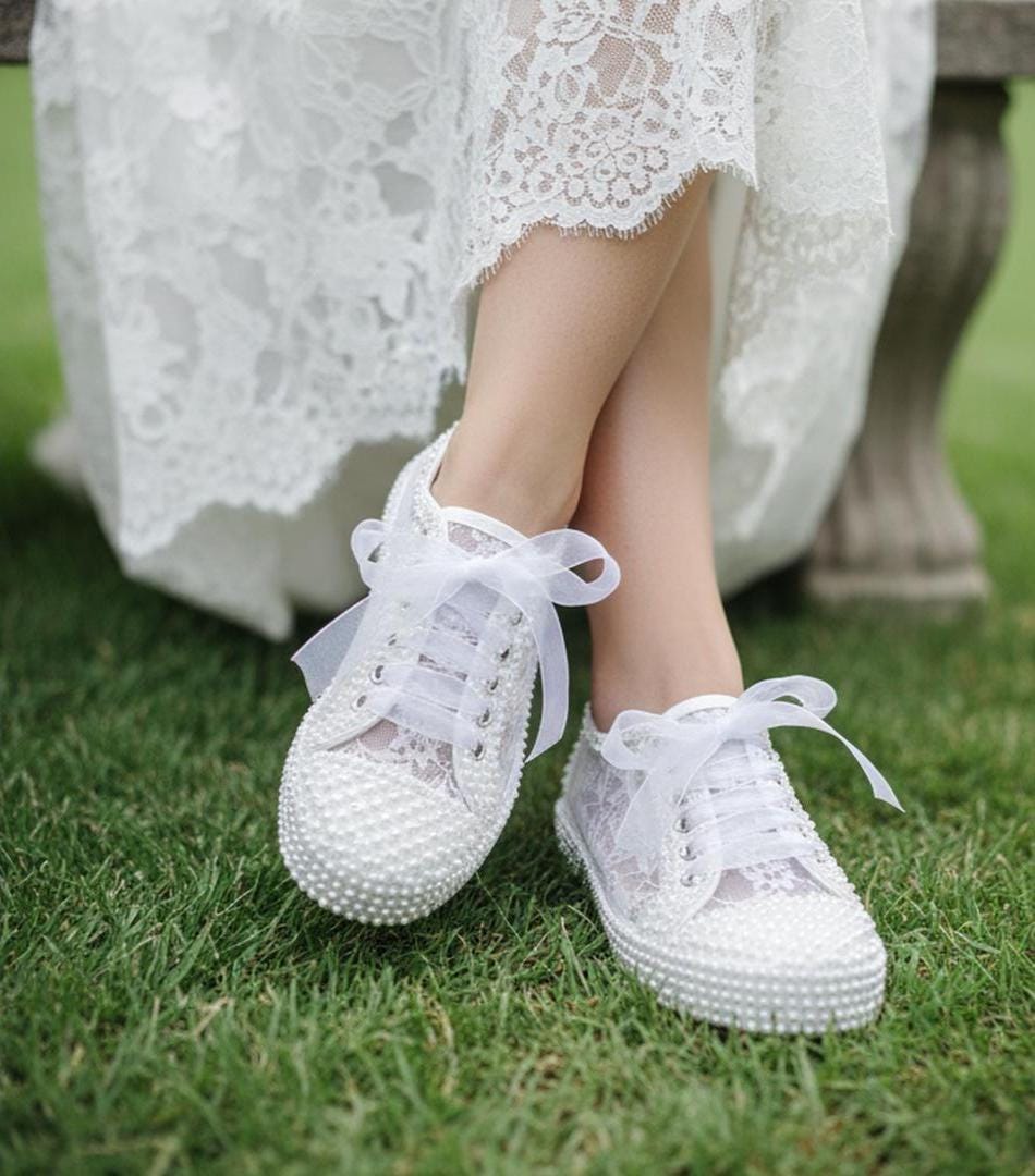 At StiloShoes, we offer free customization for your shoes, including the addition of your name and date. We do not dye shoes in colors other than white; instead, we produce them using colored materials with original inventory colors. Our handcrafted shoes feature special touches, such as glitter and printed writing on some styles, while others incorporate these customizations onto the shoe laces. All customizations are free; simply add your preferences in the personalization section. The jewelry letters and numbers can be easily removed from the shoes. For any personalizations or changes to your order, we are eager to assist and design together with you. We kindly ask that you read the product description before placing your order.