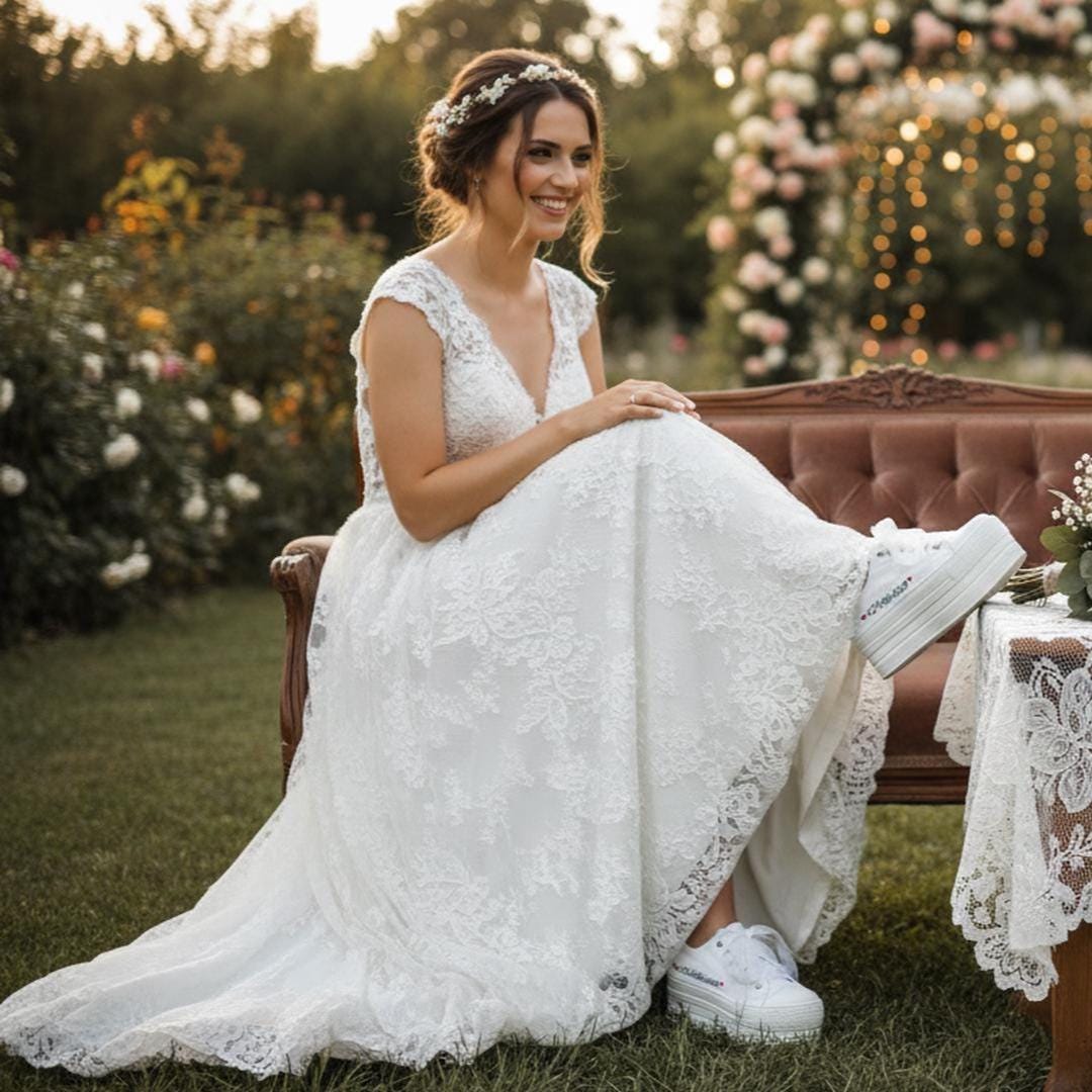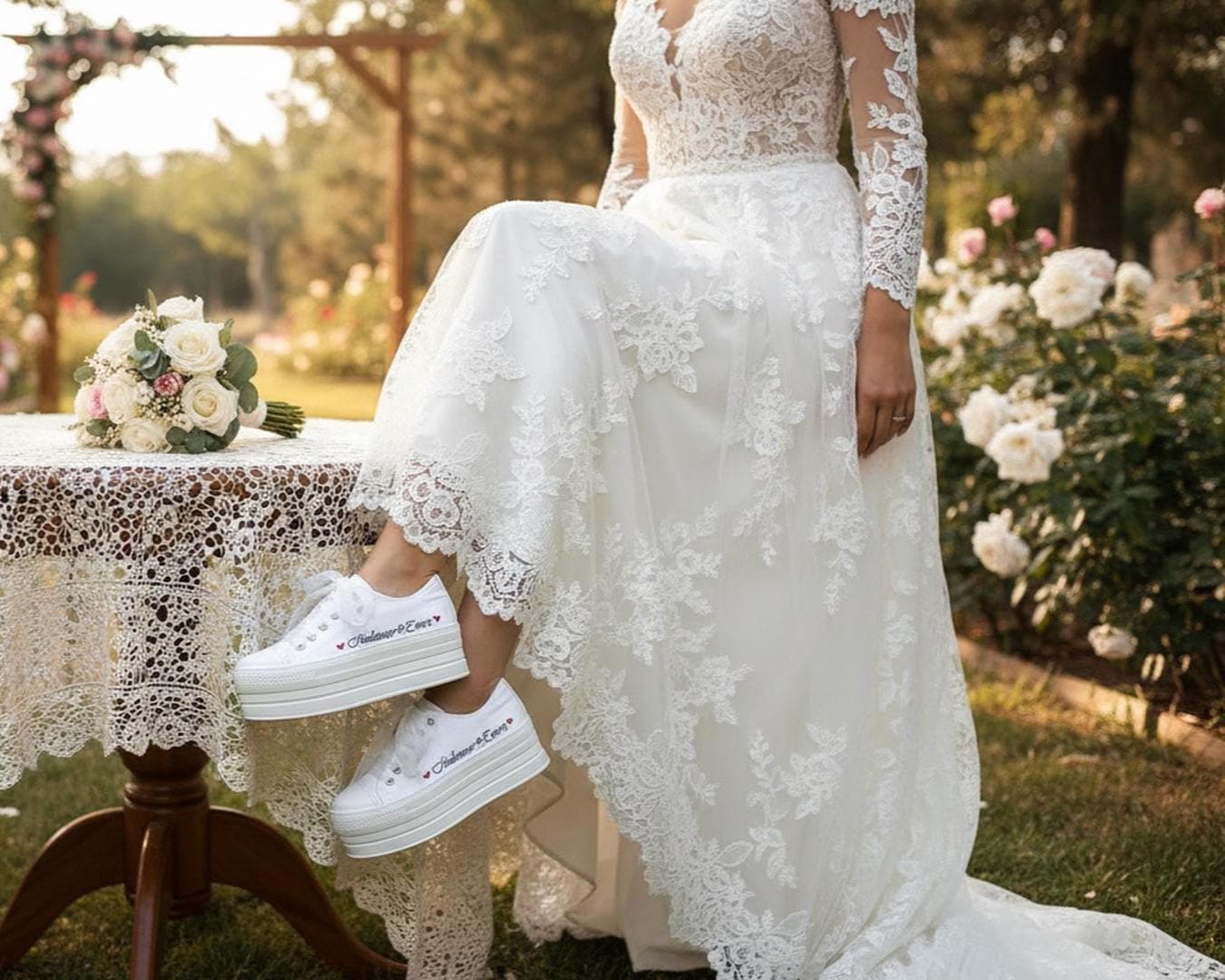 At StiloShoes, we offer free customization for your shoes, including the addition of your name and date. We do not dye shoes in colors other than white; instead, we produce them using colored materials with original inventory colors. Our handcrafted shoes feature special touches, such as glitter and printed writing on some styles, while others incorporate these customizations onto the shoe laces. All customizations are free; simply add your preferences in the personalization section. The jewelry letters and numbers can be easily removed from the shoes. For any personalizations or changes to your order, we are eager to assist and design together with you. We kindly ask that you read the product description before placing your order.